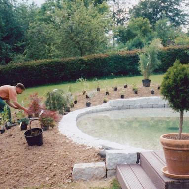 Bepflanzung: Bäume, Stauden, Wasserpflanzen, Rindenmulch