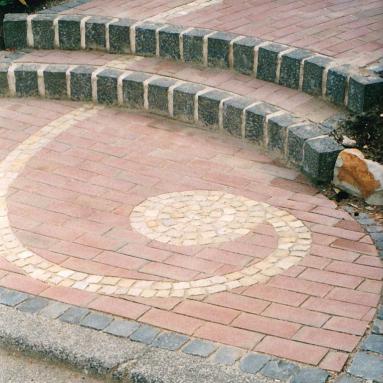 Klinker trifft Naturstein – Ein Band aus Gneis im Klinker verlegt